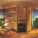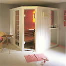 Nella versione sauna in massiccio, lampada ad angolo con schermatura